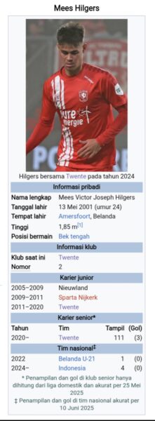 Situs Kita Garuda pada Rabu (3/9/2025) mengabarkan bahwa Hilgers absen dari Timnas Indonesia untuk FIFA Matchday September 2025.
