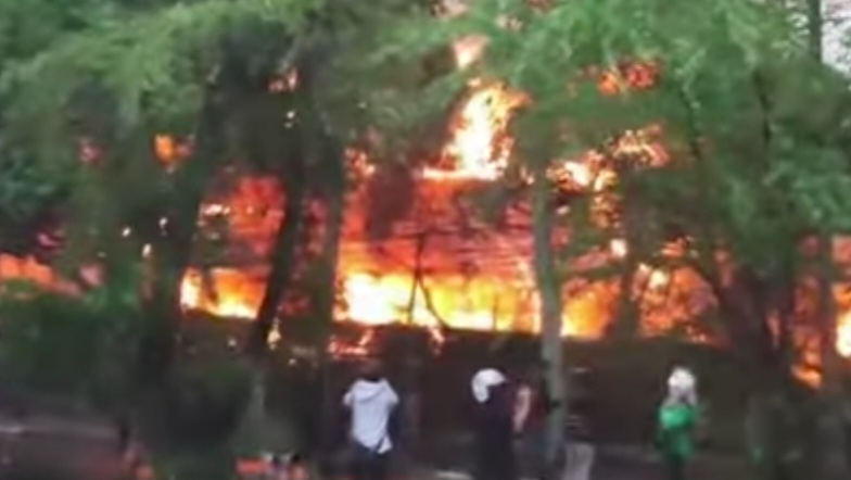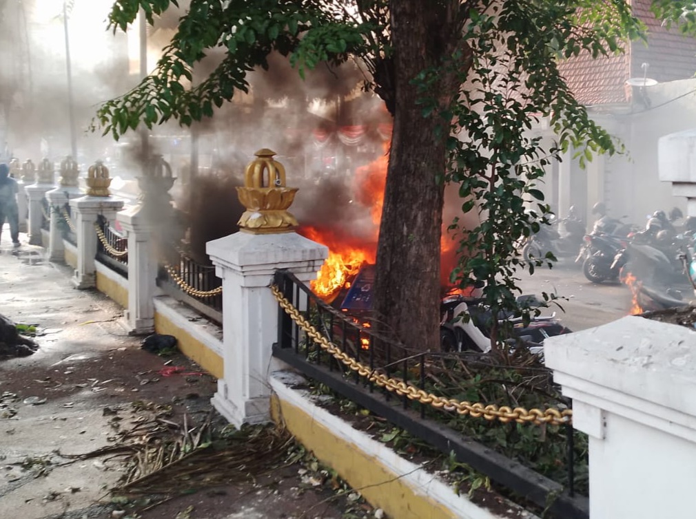 Surabaya, portal nasional – Pergerakan ratusan massa bergeser ke arah selatan setelah sebelumnya, berumpul di depan gedung negara Grahadi. Berdasar pantauan, pos polisi yang ada di taman bungkul menjadi sasaran amuk massa serta dibakar. Hingga berita ini dipublikasikan kobaran api…