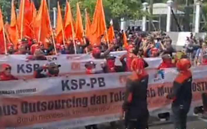 Jakarta, portal nasional – Hari ini sebanyak ribuan buruh dari berbagai serikat pekerja turun ke jalan untuk menggelar unjuk rasa di depan gedung Dewan Perwakilan Rakyat Republik Indonesia (DPR RI). Mereka juga menyuarakan berbagai tuntutan serta menyuarakan hidup buruh. “Hidup…
